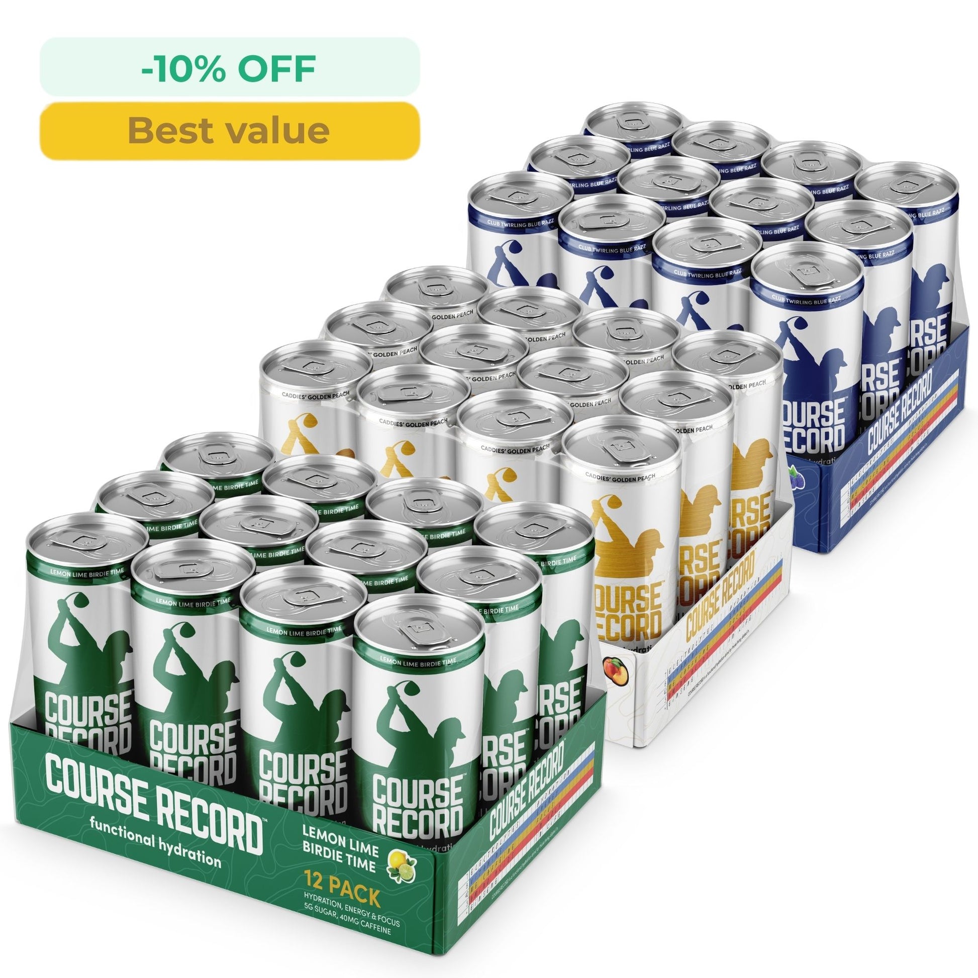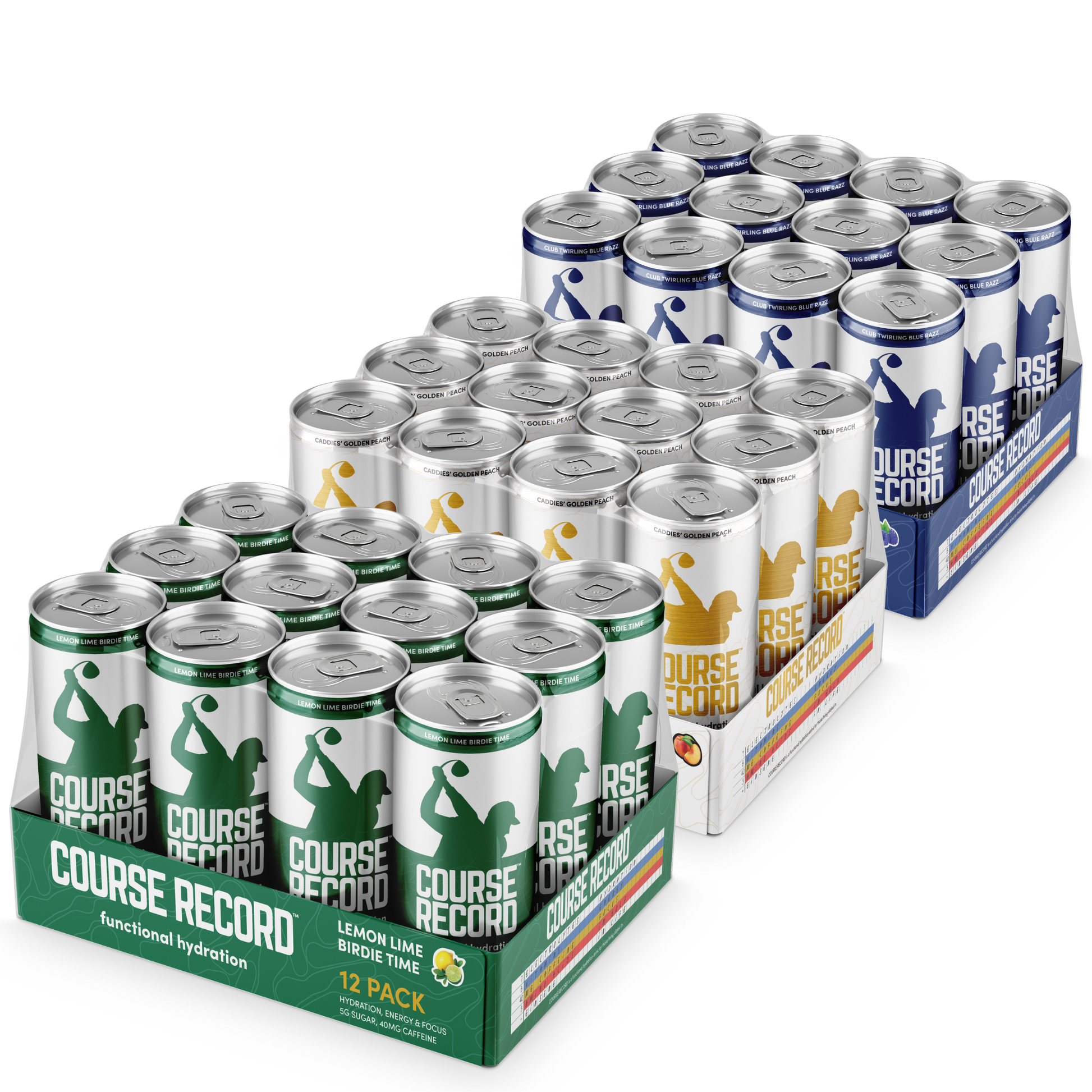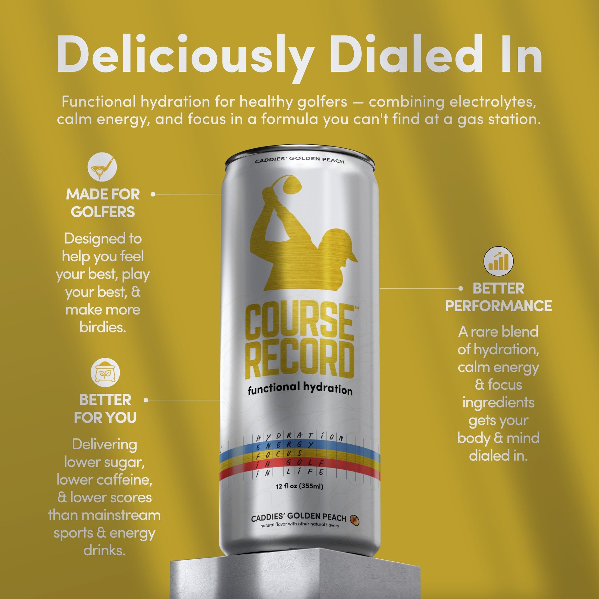 COURSE RECORD isn’t just golf-branded—it’s golf-formulated, golf-inspired, and golf-built. Everything about it was designed to work for golfers and golf courses, from the hydration needs of a 7,000-yard walk to the mental focus every shot demands, to being easy to grab from the bev cart or the pro shop fridge.
